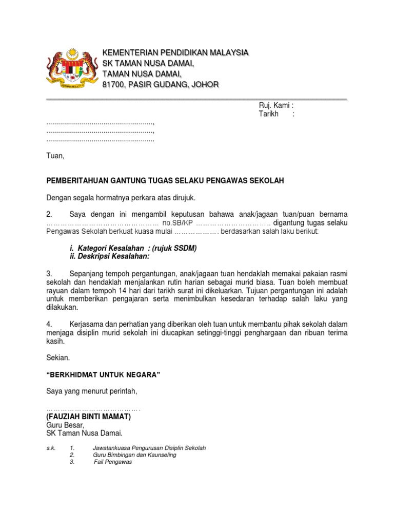 13 Contoh Surat Penggantungan Kerja 2 Pdf